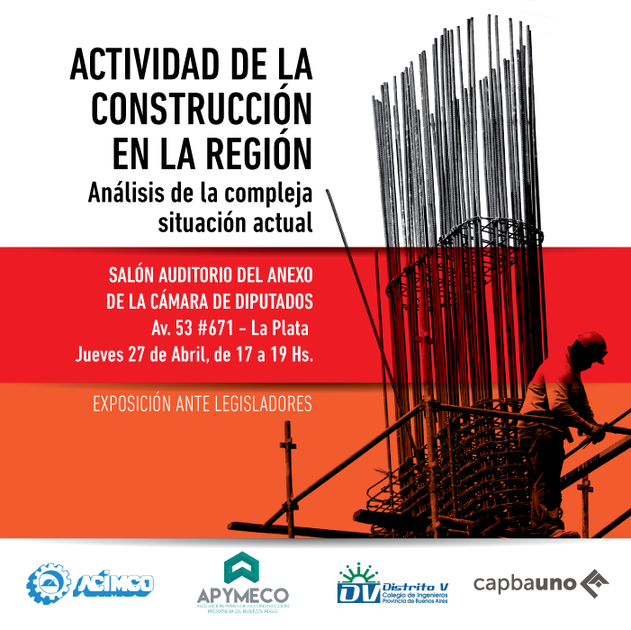 El jueves 27 de Abril en el Salón Auditorio Anexo Cámara de Diputados de la Provincia de Buenos Aires y con el auspicio de la Diputada platense Valeria Amendolara, se realizó una charla sobre “LA GRAVE SITUACION DE LA ACTIVIDAD DE LA CONSTRUCCION EN LA REGION”