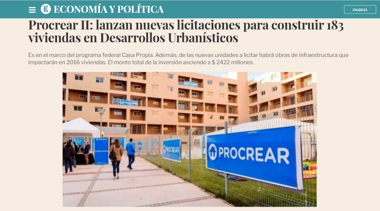 El Ministerio de Desarrollo Territorial y Hábitat, anunció la apertura de licitaciones para construir 183 viviendas en las provincias de Entre Ríos y Buenos Aires, en el marco del plan Procrear II.