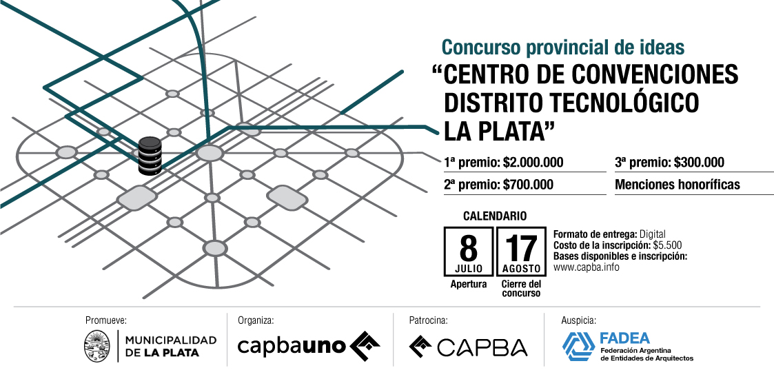 La Municipalidad de La Plata y el Colegio de Arquitectos de la Provincia de Buenos Aires Distrito I, convocan a un CONCURSO PROVINCIAL DE IDEAS PARA EL “CENTRO DE CONVENCIONES DISTRITO TECNOLÓGICO LA PLATA”, a emplazarse en la manzana comprendida por la calle 20, calle 50, calle 21 y calle 49.
