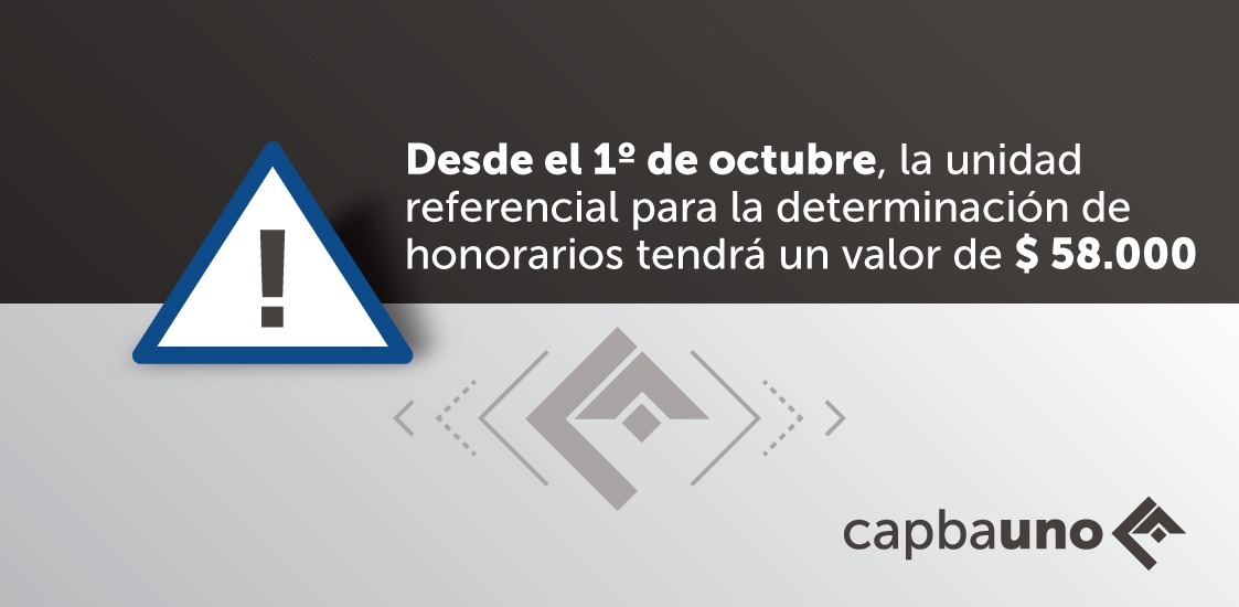 Desde el 1 de octubre está vigente el nuevo valor de la UNIDAD REFERENCIAL para la determinación de honorarios mínimos, los aportes previsionales y la CEP, que quedó establecido por Resolución 63/21 (VER+) del Consejo Superior del CAPBA en $ 58.000.- (cincuenta y ocho mil pesos), conforme a lo acordado entre los colegios integrantes de la CAAITBA.
