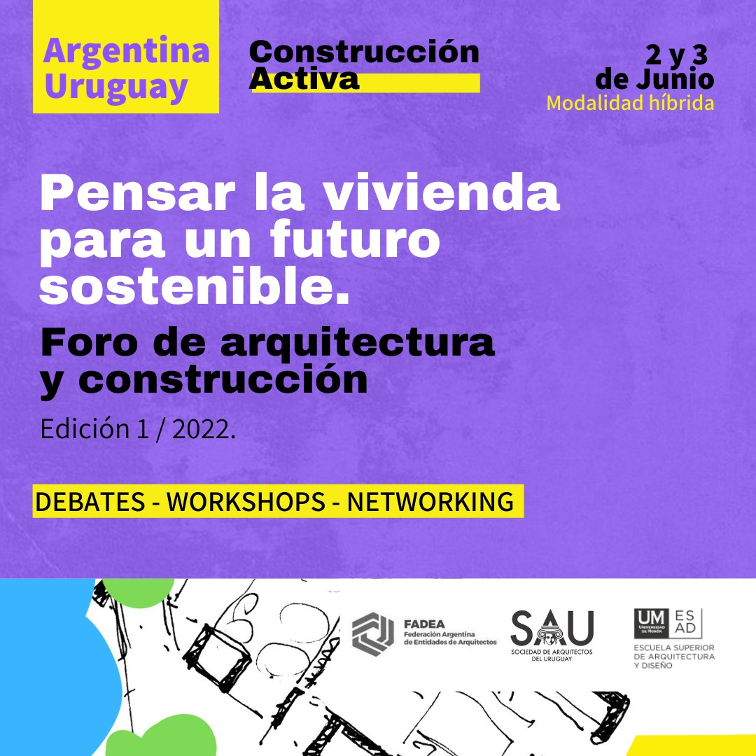 Los días 2 y 3 de junio desde las 15 hs., se realizará el Foro de Arquitectura y Construcción, que en esta oportunidad tendrá foco en la vivienda como tema central, en la idea que la misma requiere cambios significativos en cuanto a diseño, eficiencia en el aprovechamiento de recursos