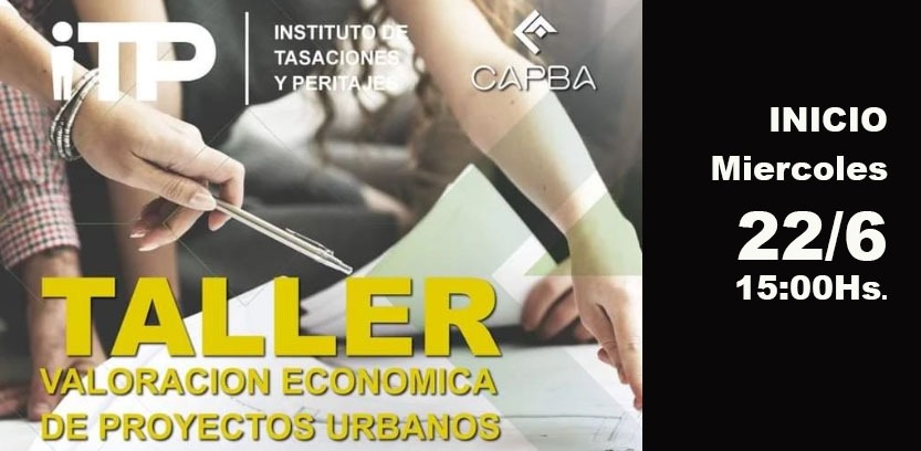 El Instituto de Tasaciones y Peritajes del CAPBA CS, inicia sus actividades del año en curso bajo el formato de Talleres, comenzando el miércoles 22/6 de 15 a 17 hs un ciclo de 4 reuniones virtuales a través de la plataforma ZOOM y Facebook live.