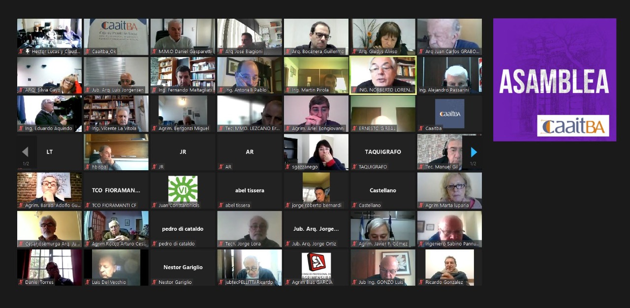 El día jueves 16 de junio, se desarrolló la Asamblea Ordinaria de Representantes de la CAAITBA. – Caja de Previsión Social para Agrimensores, Arquitectos, Ingenieros y Técnicos de la Pcia. de Bs. As., en forma virtual -no presencial- mediante la utilización de la plataforma ZOOM, abordándose como principales temas los siguientes: