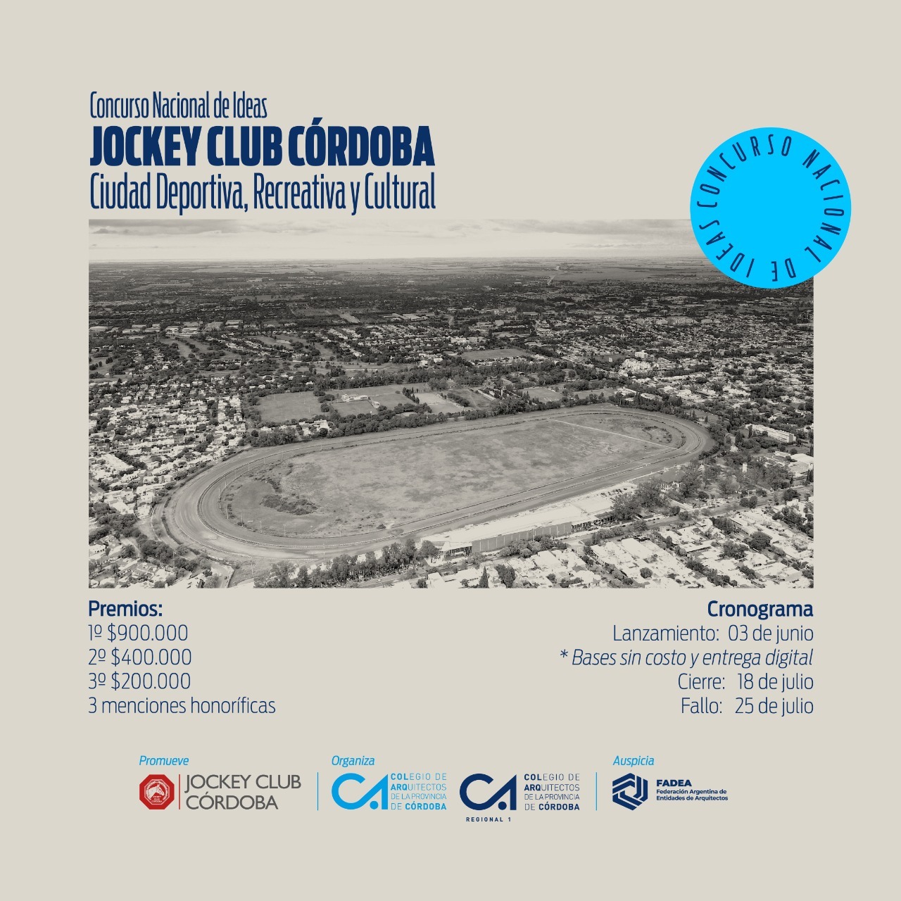 El Jockey Club Córdoba, en calidad de entidad promotora del presente llamado, y el Colegio de Arquitectos de la Provincia de Córdoba, en carácter de entidad organizadora, llaman al Concurso Nacional de Ideas “JOCKEY CLUB CÓRDOBA. Ciudad Deportiva, Recreativa y Cultural”.