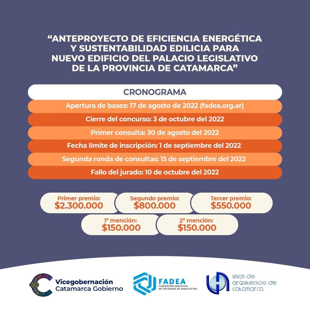 El Gobierno de la Provincia de Catamarca y la Unión de Arquitectos de Catamarca, lanzaron el Concurso Nacional de “IDEAS DE ANTE-PROYECTO DE SUSTENTABILIDAD PARA EL NUEVO PALACIO LEGISLATIVO DE LA PROVINCIA DE CATAMARCA".