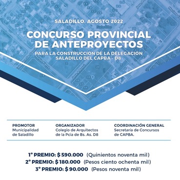 El Colegio de Arquitectos de la Provincia de Buenos Aires/Distrito 8 lanzó el Concurso Provincial de Anteproyectos para la sede Saladillo del mismo y del espacio Verde Público adyacente, en los predios ubicados en calle Rossi, entre Martín Fierro y J. V. González, de la localidad de Saladillo, Provincia de