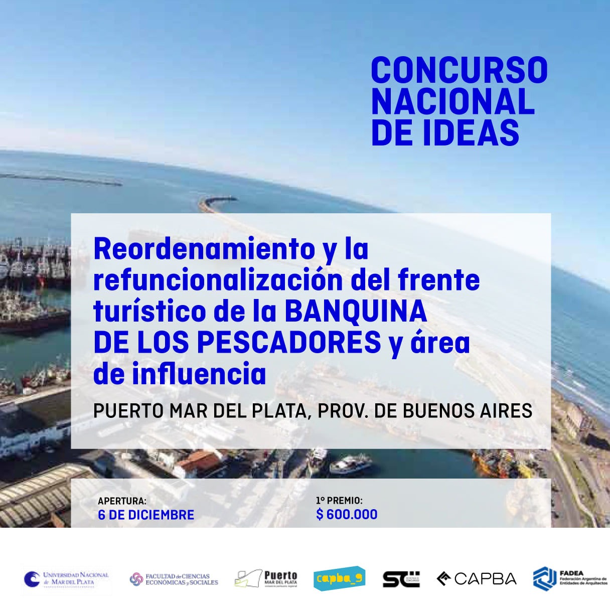 Conforme al convenio suscrito entre el CONSORCIO PORTUARIO REGIONAL DE MAR DEL PLATA; la FACULTAD DE CIENCIAS ECONÓMICAS Y SOCIALES DE LA UNIVERSIDAD NACIONAL DE MAR DEL PLATA como auspiciante y el Colegio de Arquitectos de la Provincia de Buenos Aires, Distrito IX (CAPBA D IX), se llama a un