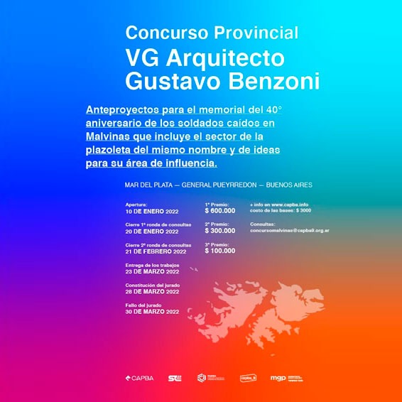 Conforme al convenio suscrito entre la Municipalidad de General Pueyrredón y el Colegio de Arquitectos de la Provincia de Buenos Aires, Distrito IX (CAPBA D IX), se llama a un CONCURSO PROVINCIAL DE IDEAS Y ANTEPROYECTOS, A UNA VUELTA PARA EL MEMORIAL DEL 40° ANIVERSARIO DE LA GUERRA DE MALVINAS