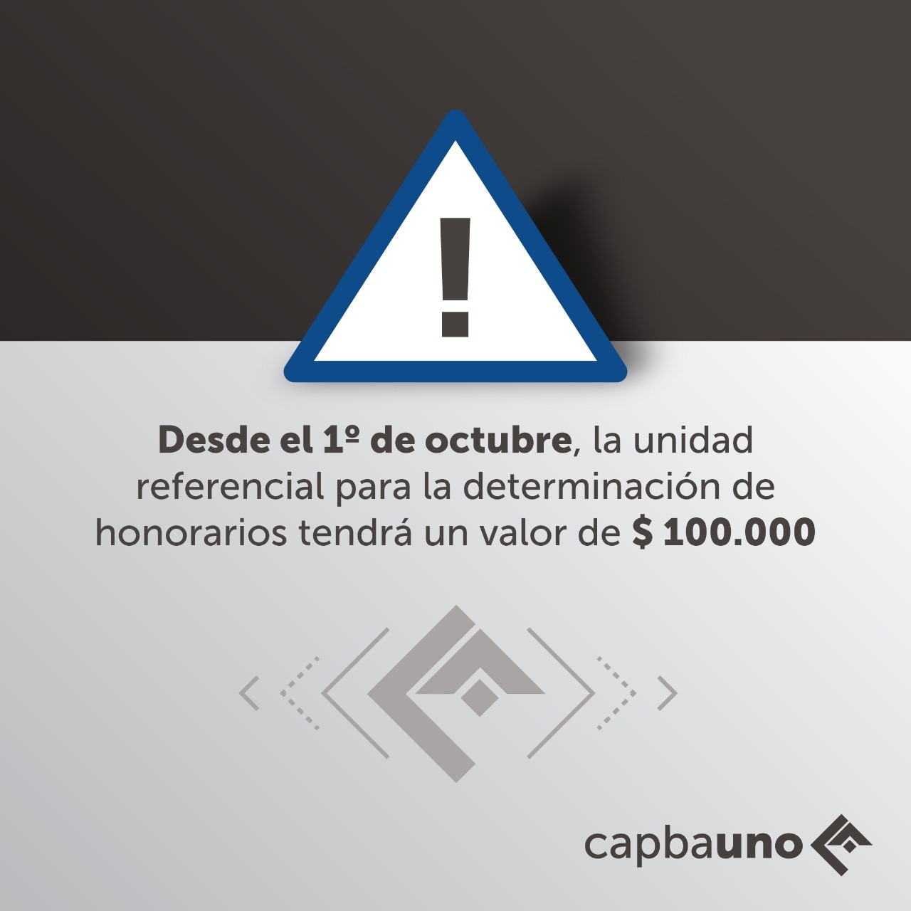 Conforme a lo acordado entre los colegios integrantes de la CAAITBA -Caja de Previsión Social para Agrimensores, Arquitectos, Ingenieros y Técnicos de la Pcia. De Bs. As.-, se estableció que desde el 1 de octubre del corriente entrara en valor el nuevo valor de aplicación para la UNIDAD REFERENCIAL, quedando